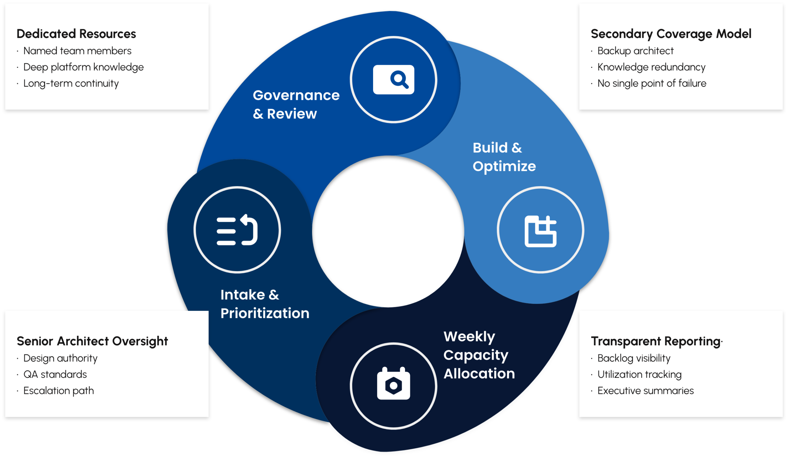 Ongoing, capacity-based support with structured governance and continuous improvement
